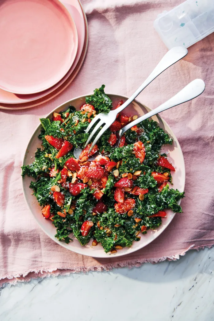 Summer Kale + Strawberry Salad (sooo good!) from “In Good Health” by Rachel Riggs